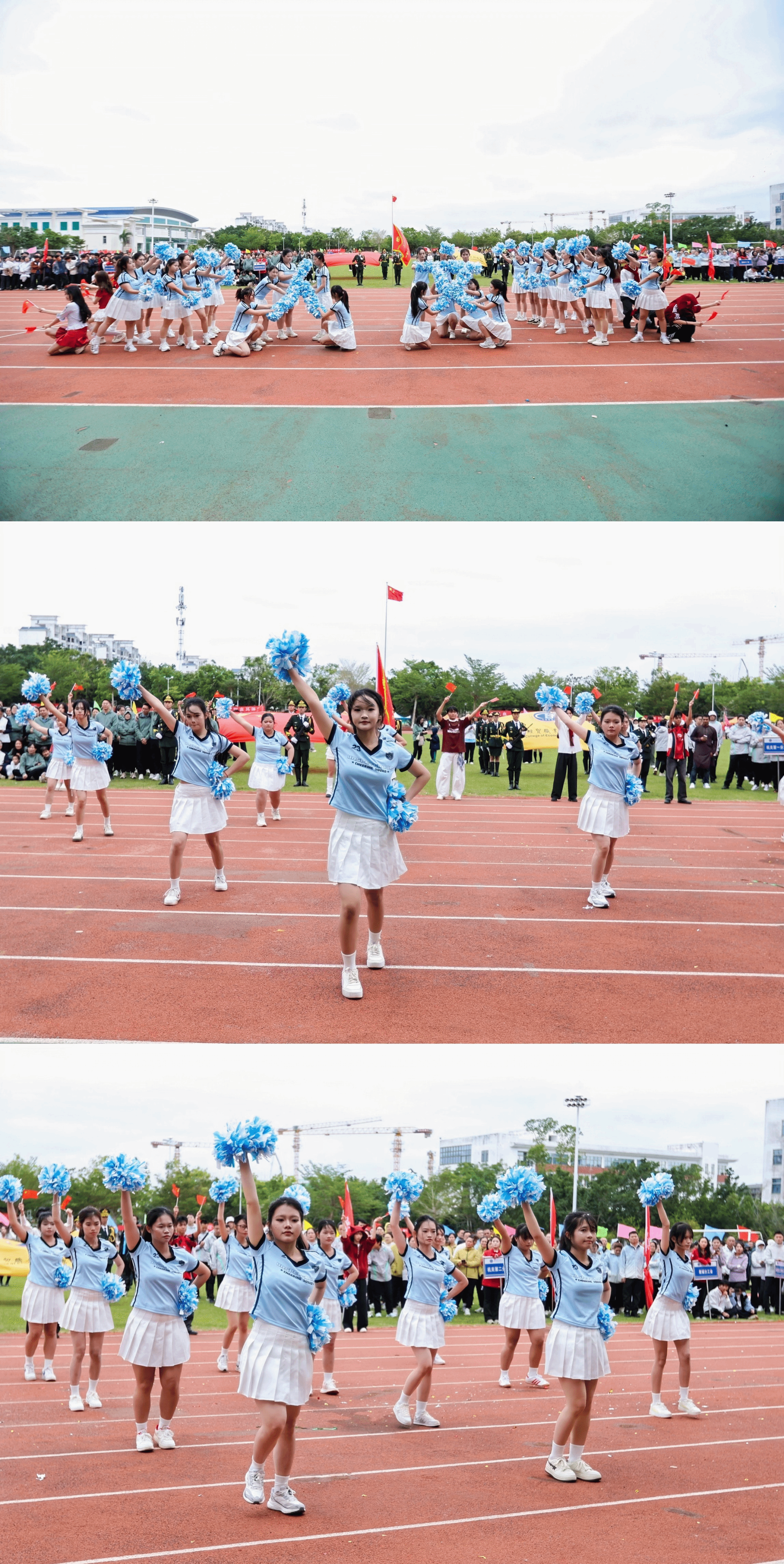 开幕式上,伴随着激昂的运动员进行曲,教师方阵与学生方阵精神抖擞地步入会场。尤为引人注目的是学生队列的服饰,巧妙融入了传统“簪花”元素,清新雅致,展现了人文艺术学院学子独特的审美情趣与文化底蕴,成为运动场上一道亮丽的风景线。活力四射的学生啦啦操表演将现场气氛推向高潮,跃动的身影与欢快的节奏,充分展现了青年学子的蓬勃朝气。