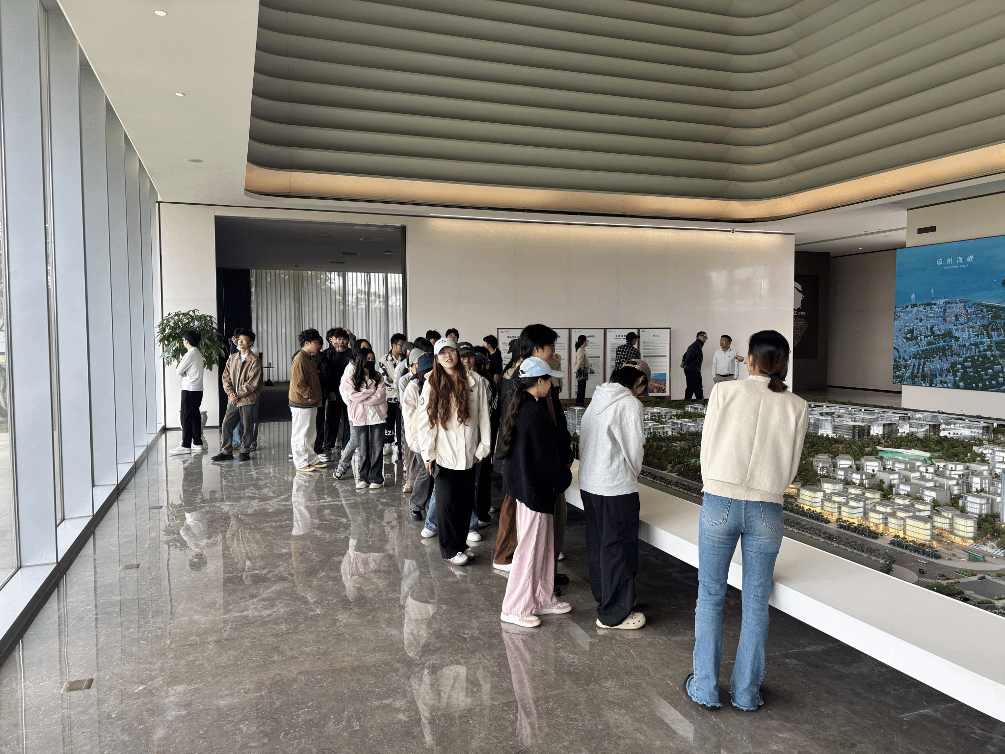 活动中,陆侨集团人事经理杨女士全程带队,引领师生们深入ICC海口五源河创新产业中心核心区域。通过实地观摩与专题讲解,师生们详细了解了产业中心的空间布局、功能定位及未来发展规划。杨经理结合企业发展历程,系统介绍了集团在地产开发、文旅运营、现代农业及创新科技四大核心产业的布局成果,让同学们对现代企业的运营模式与产业生态有了直观认知。