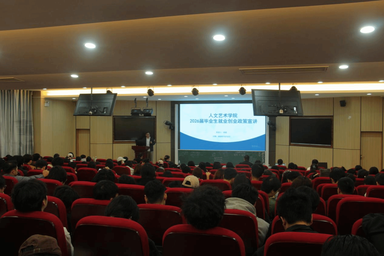 根据学校招生与就业创业处的工作安排,在人文艺术学院党总支的指导下,2025年12月2日,院学工办在1-421教室组织召开就业创业政策宣讲会,全院共466名2026届毕业生参加,宣讲会由学工办副主任徐超主持。