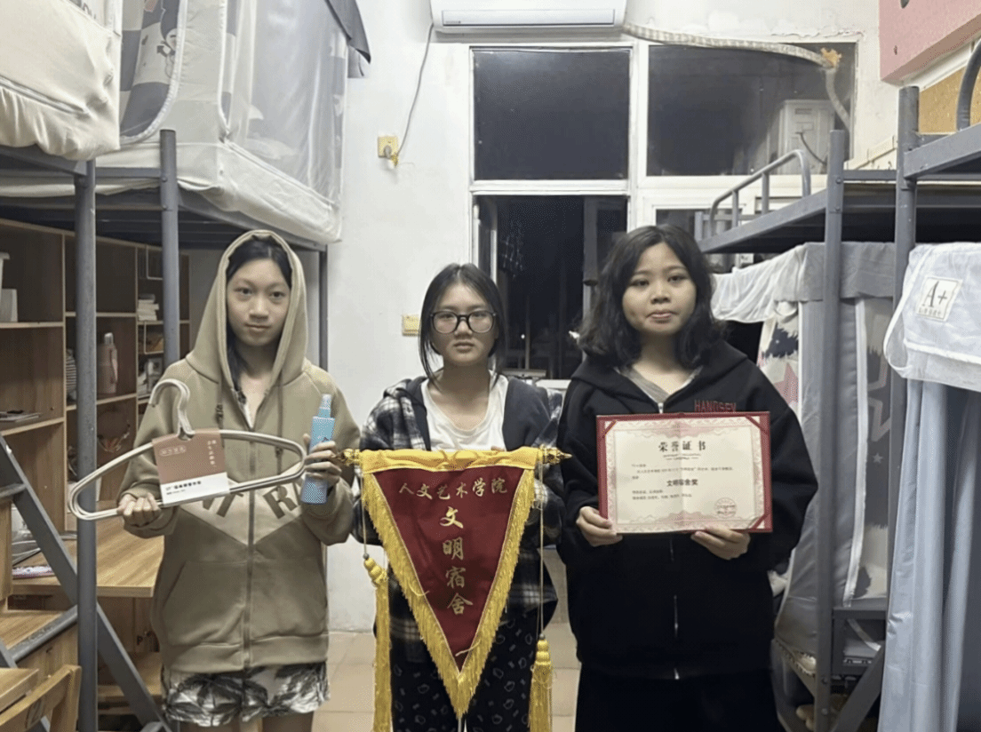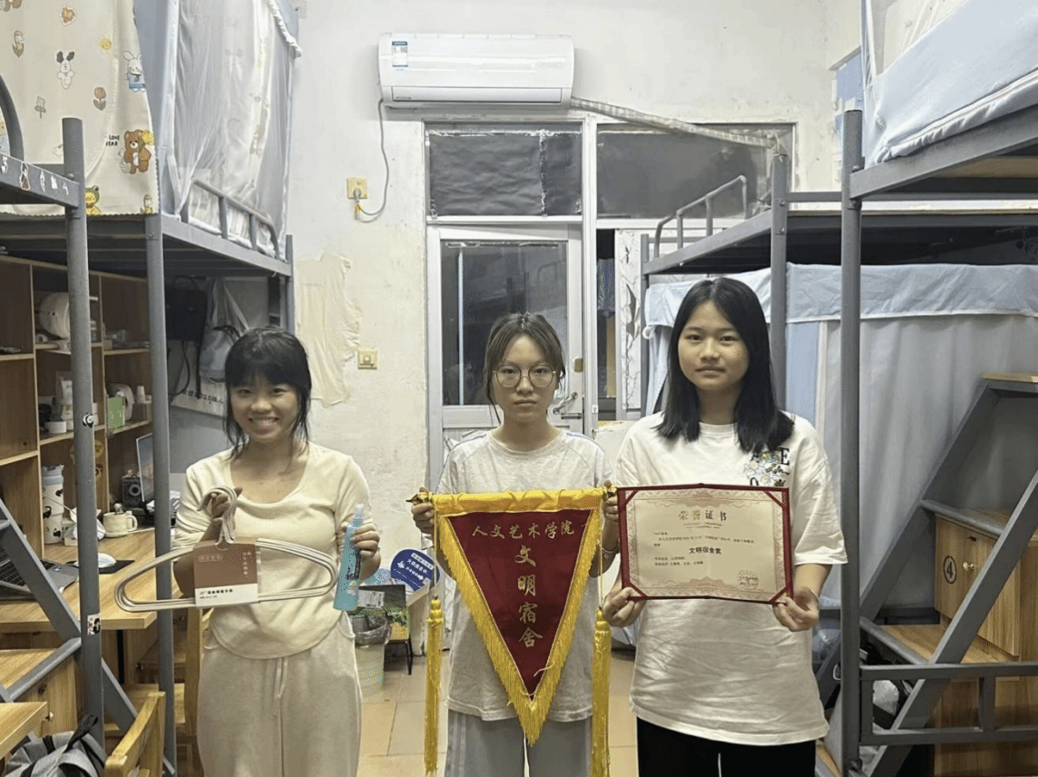 为提升大学生活品质及学生文明修养,在人文艺术学院党总支的指导下,学工办近期针对全院学生宿舍举办了2025年12月文明宿舍评选活动。我院7栋312、314、405、413室四间宿舍凭借整体布置、卫生整洁及团结友爱等方面展现,在评比中脱颖而出,荣获12月“文明宿舍”荣誉。