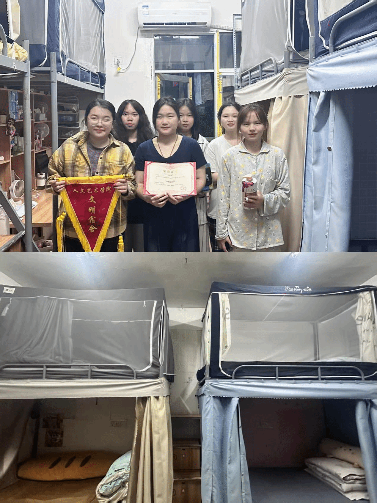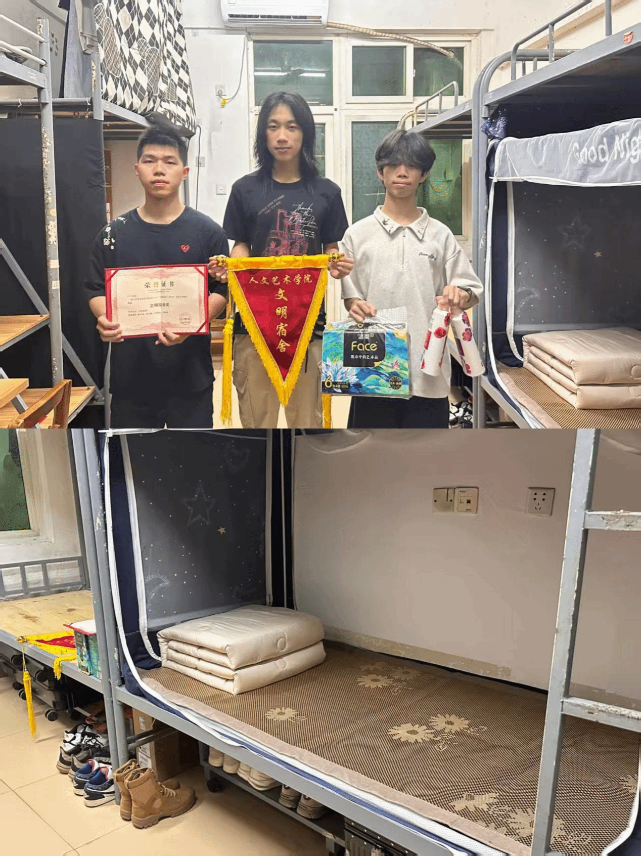 根据学院文明素质养成主题教育工作要求,为提升大学生活品质及学生文明修养,在人文艺术学院党总支的指导下,学工办近期针对全院学生宿舍开展了2026年3月“文明宿舍”评选活动。我院7栋317、520,5栋214、111室四间宿舍凭借整体布置、卫生整洁及团结友爱等方面展现,在评比中脱颖而出,荣获3月“文明宿舍”荣誉。