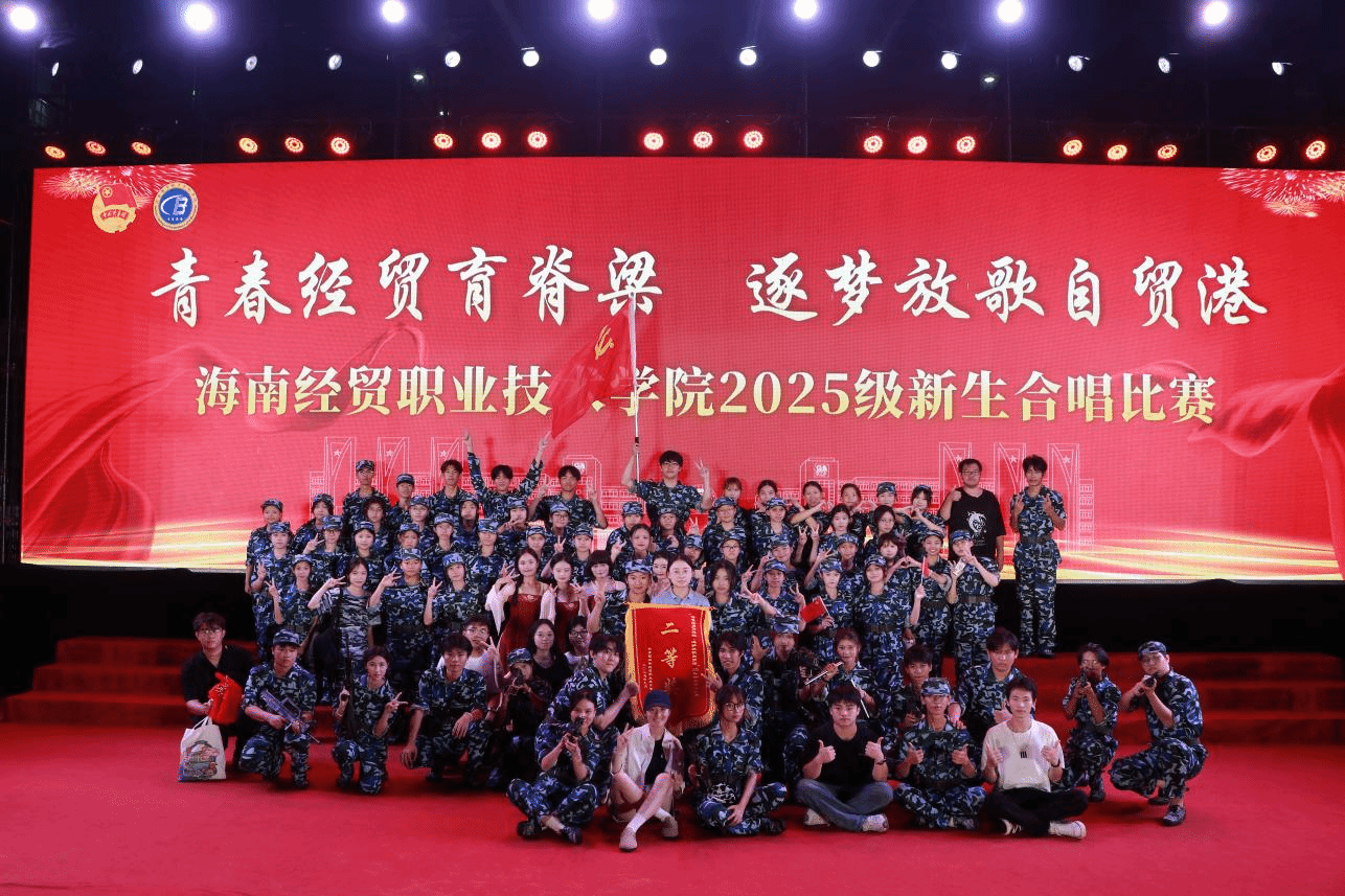 赤色旋律续华章,传世歌声庆华诞。海南经贸职业技术学院于2025年9月29日晚新生合唱比赛在经贸广场隆重举行新生合唱比赛。人文艺术学院代表队凭借着一曲《没有共产党没有新中国》荣获第二名。