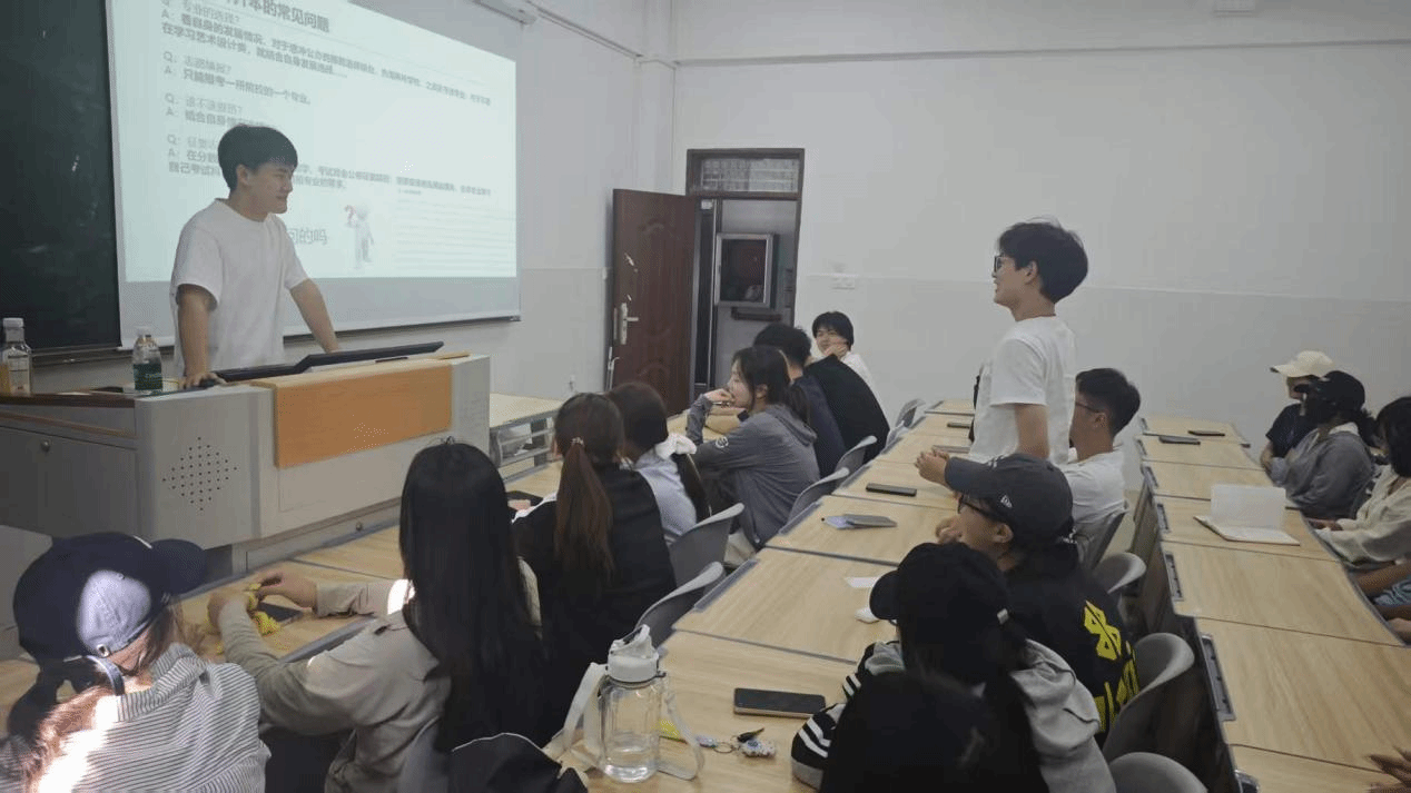 随后,刘浩鹏同学结合自身成功上岸经历,带来接地气的实战分享。他聚焦备考规划、复习技巧、考试题型分析三大核心内容,将备考划分为基础巩固、专项提升、模拟冲刺三个阶段,细致拆解各阶段学习重点;针对不同科目分享高效记忆方法与刷题技巧,深入分析客观题解题思路与主观题 “理论结合案例” 的答题模式,同时结合自身踩坑经历,提醒同学们避免盲目复习、合理分配时间。