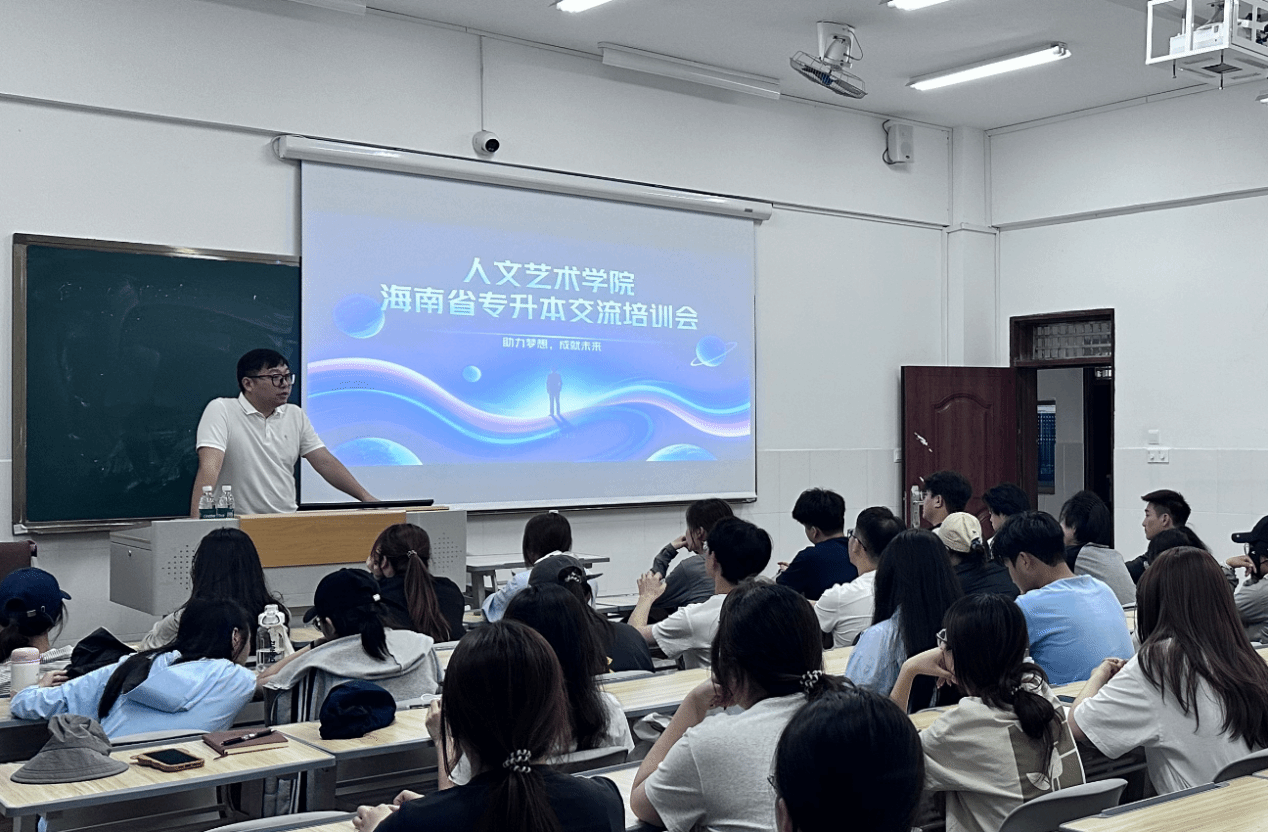 2026 年 3 月 24 日,在学院党总支的指导下,人文艺术学院海南省专升本培训交流会顺利举行,活动由学院负责就业工作的辅导员徐超老师主讲,特邀 2025 届优秀毕业生刘浩鹏同学现场分享实战备考经验,为同学们搭建了政策解读与经验交流的高效平台。