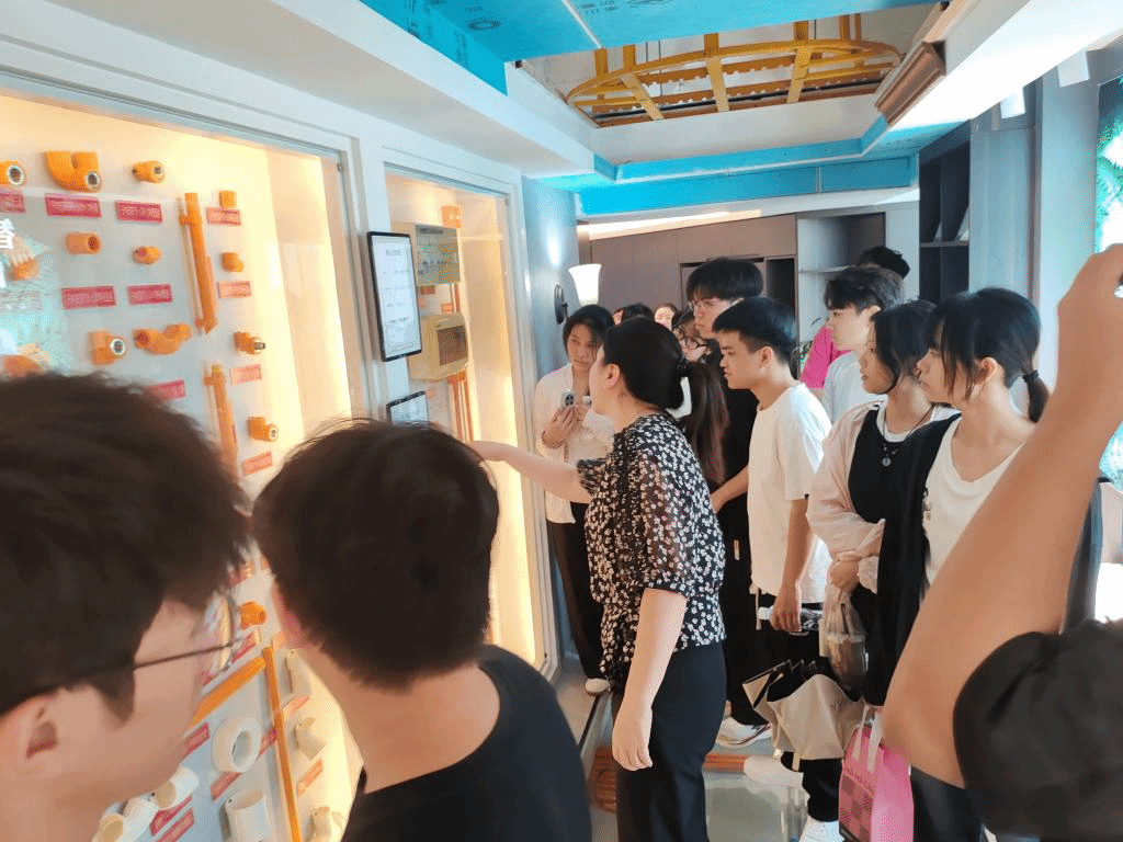 活动期间,海南区域总经理肖冰先生对学院师生一行的到来表示热烈欢迎,他表示,希望以此次活动为契机,进一步加深校企双方合作对接,细化合作内容,为后续全方位、深层次合作筑牢基础。随后,企业客服经理晏晓静、冉晓兰女士分别带队,引领师生们深入企业各业务板块进行实地参观,并结合企业实际开展专题讲解。通过实地观摩、案例解析与细致讲解,师生们全面了解了企业的发展历程、企业文化及核心发展理念,并结合海南热带宜居设计特色,就家装工艺标准、环保材料选用等核心内容,为同学们进行了深入浅出的讲解,让大家对行业实操有了直观认知。