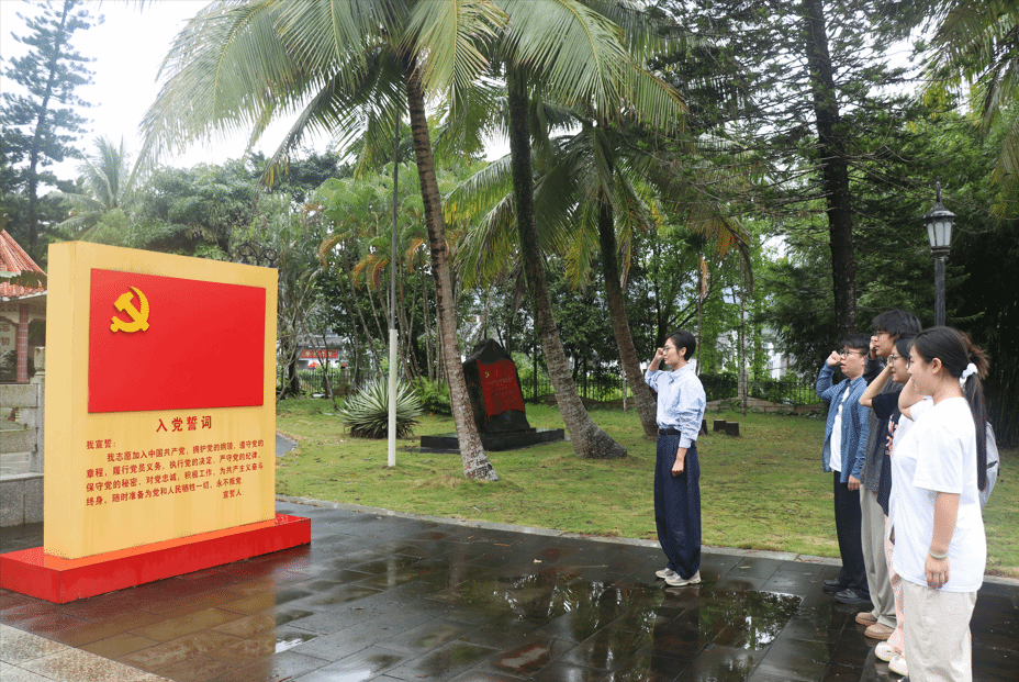 支部成员移步至琼崖革命先驱王文明、冯白驹同志的铜像前,于纪念雕像前肃立默哀,向革命先辈致以崇高敬意。在党旗前,全体党员面向先烈庄严重温入党誓词,表达对革命精神的传承之志与缅怀之情。