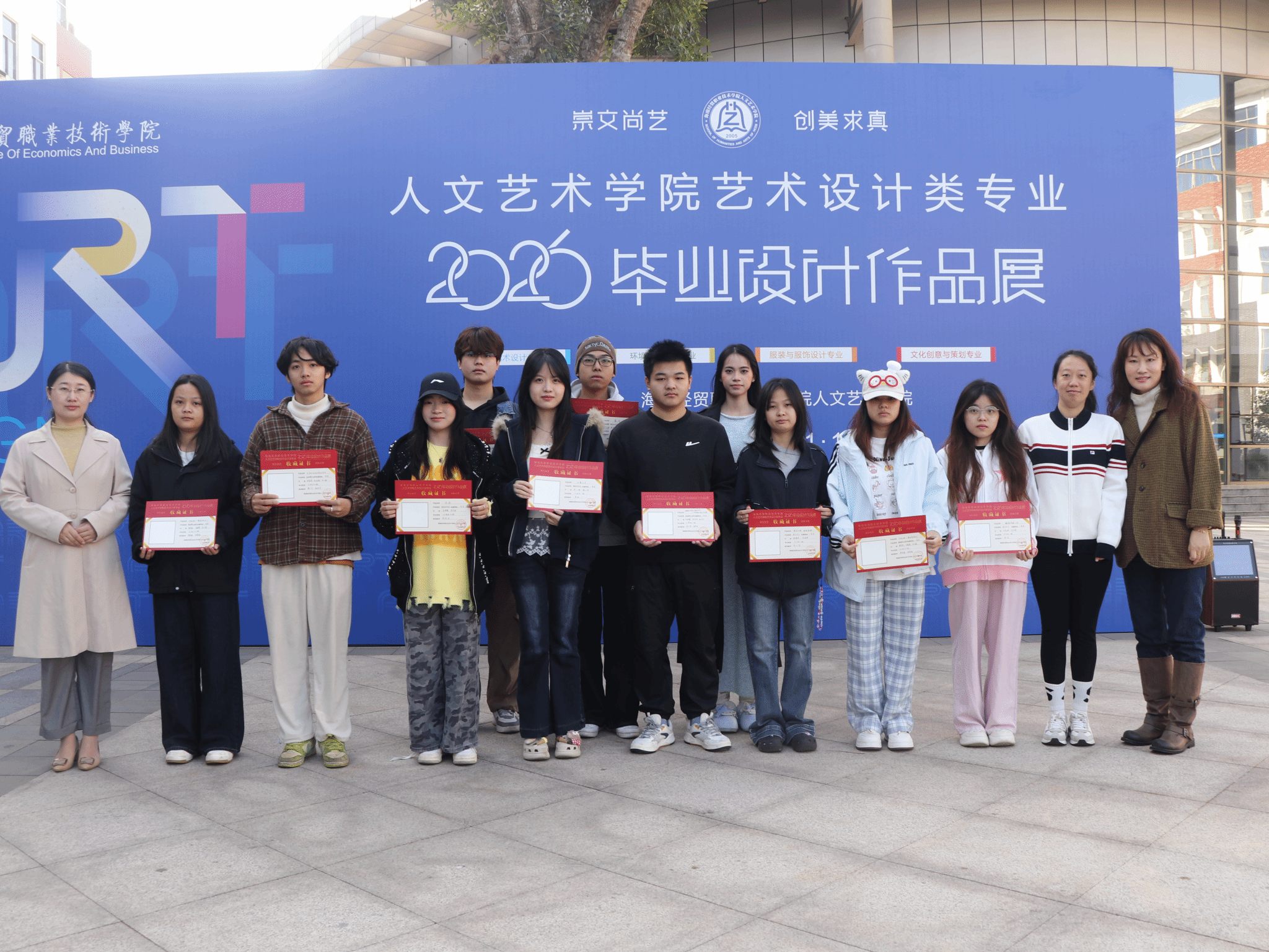 1月9日上午,海南经贸职业技术学院人文艺术学院在第六教学楼隆重举办2026届艺术设计类专业毕业设计展开幕式。学院班子成员、专业教师、辅导员及毕业生共同出席了本次活动。