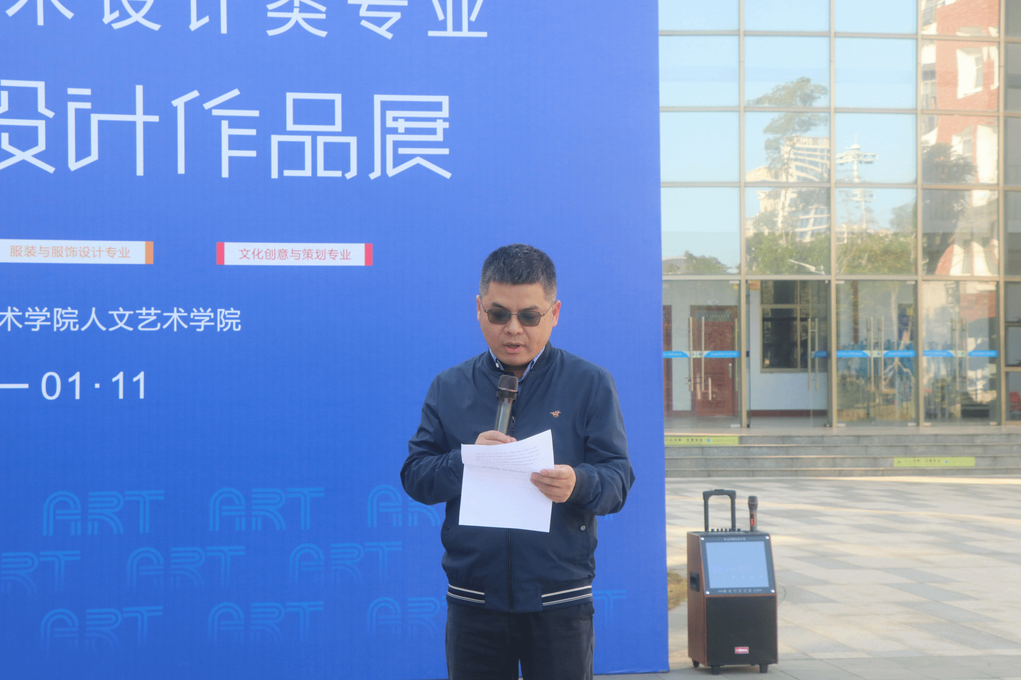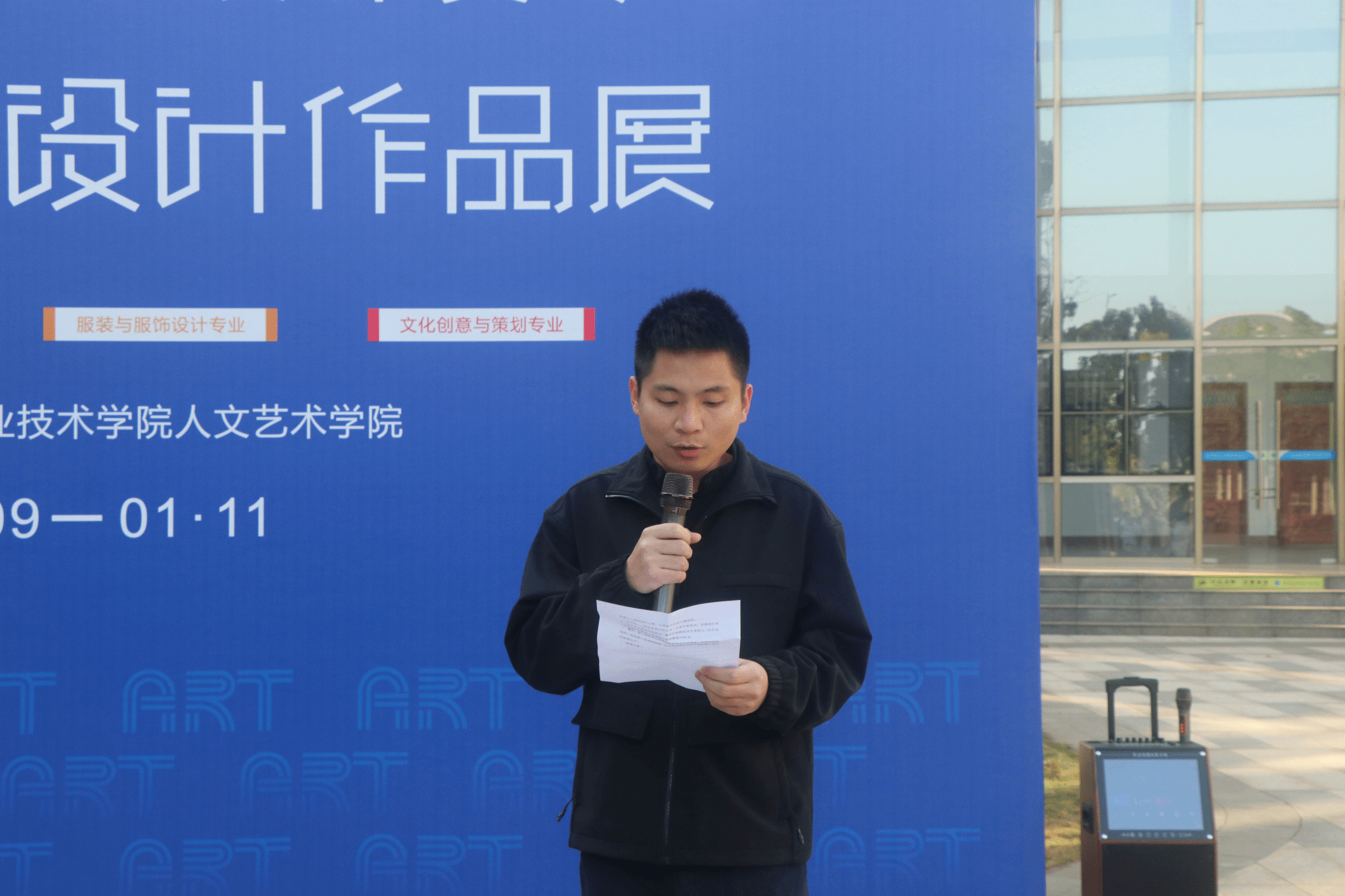 开幕式上,人文艺术学院副院长胡晓致辞,介绍了本届展览的主题与特色。他指出,本次展览以“以创致用、以文化人”为核心理念,集中展示了艺术设计、服装与服饰设计、环境艺术设计、文化创意与策划四个专业的194套优秀作品,充分体现了学院在工作室引领、项目驱动、竞赛锤炼的育人机制下,推动产教融合、服务地方文化的育人成效。